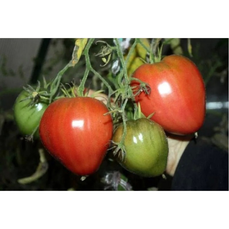 Популярный салатный сорт. Ценится за прекрасный вкус и аромат, оригинальную форму, крупноплодность, хорошую продуктивность. Среднеранний, от всходов до начала созревания 105-110 дней. Растение индетерминантное, высотой 130-150 см. Первое соцветие закладывается над 9-11 листом, последующие –через 3 листа. Плоды сердцевидные, мясистые, малосемянные, массой 150-350 г. Сладость во вкусе оттеняется легкой кислинкой. Урожайность 9-10 кг/м2.