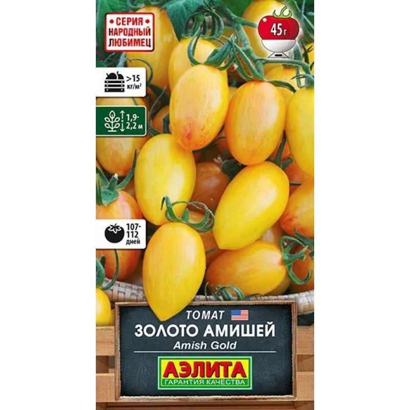 Настоящая золотая гирлянда! Гроздья желтых, словно светящихся плодов-сливок делают этот томат одним из фаворитов! Раннеспелый сорт (107-112 суток от всходов до сбора урожая) был создан селекционером Джеффом Доусоном на основе потрясающего томата Амиш паста (старинного сорта секты Амишей из США) и ультрасладкого гибрида Sungold. Растения индетерминантные, высотой 1,9-2,2 м. Помидоры медово-сладкие, с гармоничной кислинкой и богатым послевкусием, массой 35-45 г. Отличный выбор для салатов и сэндвичей! Более мелкие плоды пригодны для цельноплодной консервации. Урожайность более 15 кг/м2 в теплице. Отлично транспортируется и хранится.