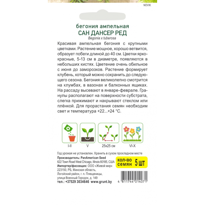 Бегония боливийская Копакабана Красная F1, 5 семян (Cerny seed, Чехия) -2шт