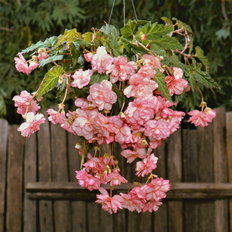 Красивая клубневая ампельная бегония с махровыми и полумахровыми цветками.