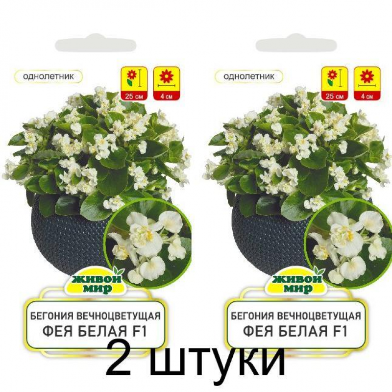 - Сорт семян:бегония Фея белая F1, 2шт