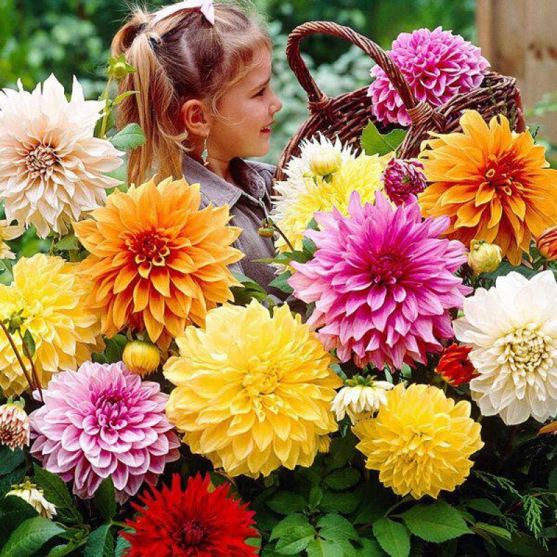 Смесь быстрорастущих высокорослых георгин с крупными махровыми соцветиями разнообразной окраски.