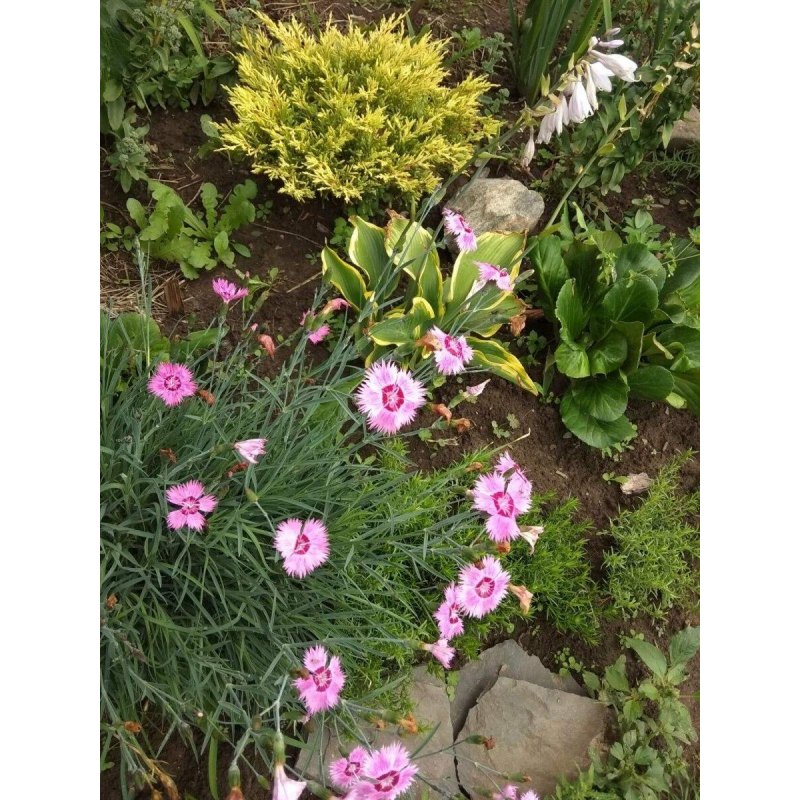 Многолетнее растение высотой около 30 см. Цветки очень душистые, диаметром 2,5-3 см, полумахровые, розовые, малиновые, красные, часто двухцветные, с бахромчато-разрезными по краю лепестками. Широко используют для бордюров, альпинариев, рокариев, групповых посадок на газонах, каменистых садиков. Семена высевают в мае. На постоянное место высаживают в июле. Светолюбива, предпочитает хорошо дренированную плодородную почву. Зимует без укрытия.Качество семян соответствует ГОСТу 12420-81 и Постановлению МСХП РБ от 29.10.2015г. №37.