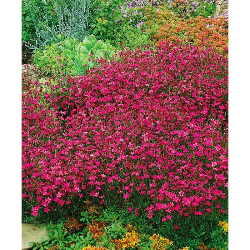 Кустик подушковидный с многочисленными узловатыми стебельками 15-20 см высотой и мелкими узкими темно-зелеными листьями. Цветки карминно-красные, 1-1,5 см в диаметре, во время цветения густо покрывают растение.