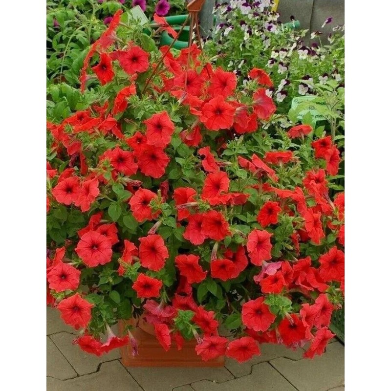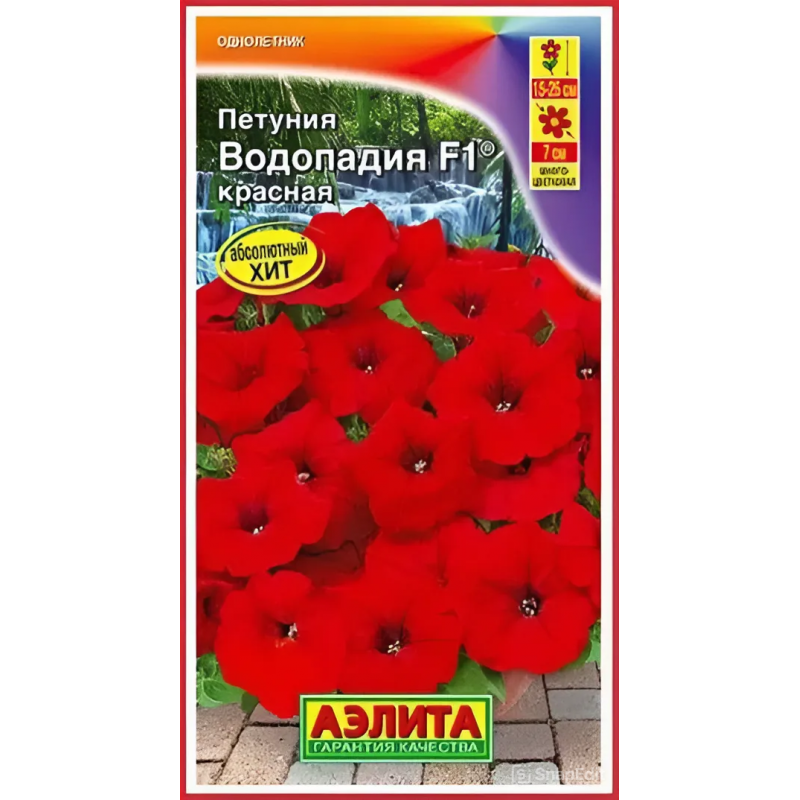 Абсолютный хит! Серия многоцветковых петуний каскадного типа, которая отличается совершенно новой полуампельной формой. Уникальность этих гибридов в том, что новые цветоносные побеги образуются без прищипки в пазухах листьев в середине куста, не оставляя пустот. Растения формируют пышные кустики, высотой 15-25 см. Поникающие побеги длиной до 70 см полностью усыпаны яркими насыщенными цветками Ø 7 см и спускаются восхитительным водопадом. Гибриды устойчивы к повышенным температурам и неблагоприятным погодным условиям. Петунии Водопадия F1® наилучшим образом подходят для подвесных кашпо и корзин.