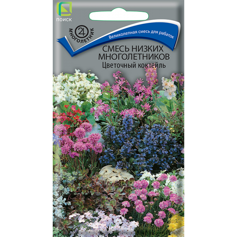 Семена многолетников «Цветочный коктейль» — это готовая смесь низкорослых растений (20-30 см в высоту) для создания ярких акцентов в саду. Идеально подходит для оформления рабаток, бордюров, альпийских горок и групповых посадок на газоне. Смесь включает виды с разнообразной окраской и формой цветков, которые сохраняют декоративность с июля до конца августа.
