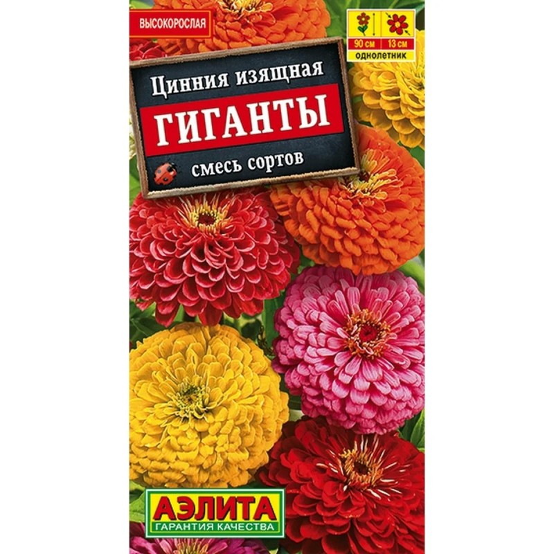 Одна из наиболее высокорослых (80-90 см) и крупноцветковых, махровых цинний. Плотные, георгиновидные соцветия диаметром 11-13 см венчают прямые, прочные стебли. Назначение универсальное – украшение цветников и срезка. Неприхотливость, простота ухода, долгое цветение в сочетании с разнообразием расцветок делают эту смесь привлекательной для начинающих цветоводов.