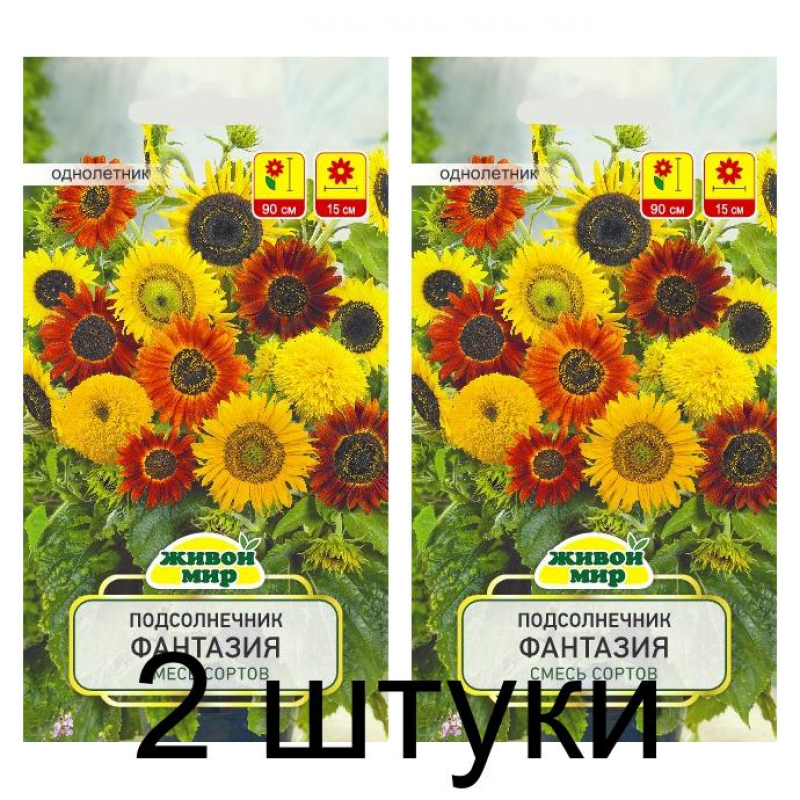 Яркая смесь низкорослых сортов подсолнечника высотой около 90 см.