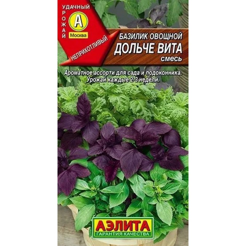 Новинка из трех самых вкусных базиликов. В состав смеси входят сорта КАРАКУМ ® – 30% (фиолетовый, с ароматом корицы), БУТЕРБРОДНЫЙ ЛИСТ – 35% (зеленый, с крупными листьями и ненавязчивым гвоздичным ароматом), ЛИМОННОЕ ЧУДО ® – 35% (зеленый, с лимонно-мятным ароматом и сладко-острым вкусом). Наибольшее количество ароматических веществ накапливается в листьях к началу бутонизации. Свежие и сушеные листья базилика добавляют в салаты, соусы, смузи, мясные и рыбные блюда, а также в масла – для их ароматизации. Смесь базилика и розмарина –отличный заменитель соли при бессолевой диете. Урожайность зелени 1,3-2,3 кг/м2.