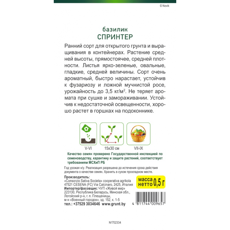 - Тип:Семена зелени