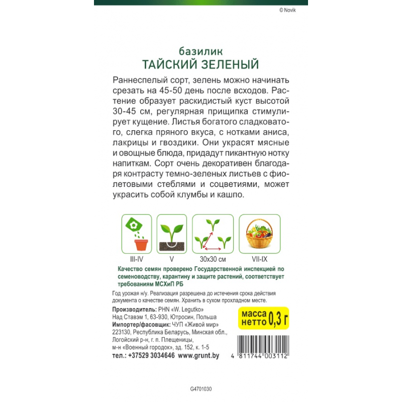 Раннеспелый сорт, зелень можно начинать срезать на 45-50 день после всходов.