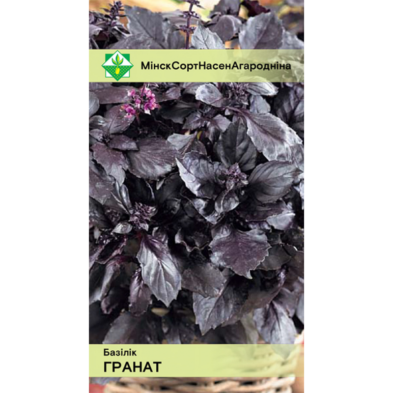 Однолетнее теплолюбивое растение высотой до 40 см. Раннеспелый сорт. Листья темно-фиолетового цвета, средних размеров, обладают пряным, душистым ароматом и насыщенным вкусом. Листья и молодые стебли используются в свежем и сушеном виде как приправа и ароматизатор. Выращивают рассадным способом или посевом семян в грунт. Подходит для возделывания в горшочной культуре. Не переносит заморозков! Качество семян проверено и соответствует Постановлению МСХиП РБ №37 от 29.10.2015г.
