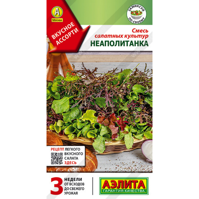 Смесь салатных культур Неаполитанка — это набор семян для выращивания разнообразной зелени, которая станет идеальной основой для витаминных салатов. В состав входят 8 популярных культур: индау Спиди (руккола с пикантным вкусом), капуста японская Изумрудный узор (нежные листья с высоким содержанием микроэлементов), кресс-салат Весенний (быстрорастущая зелень с горчичным оттенком), салат Десерт (сочные хрустящие листья), салат Дубачек МС (дуболистный сорт с нежной текстурой), салат Китеж (маслянистый сорт с мягким вкусом), салат Тайфун (пряный с яркой окраской) и эндивий Кружево (слегка горьковатый, богат витаминами).