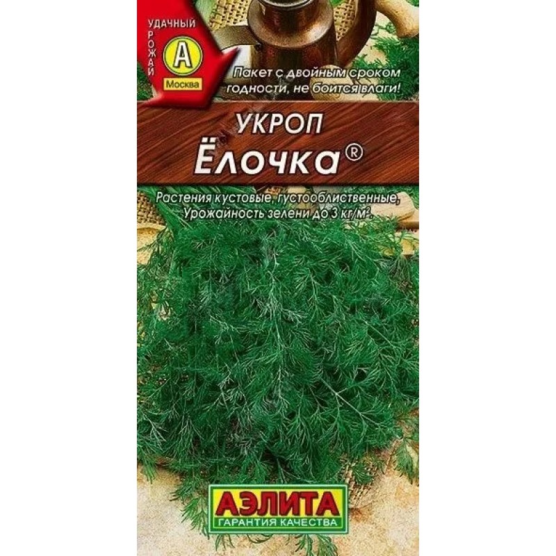 Откройте для себя укроп «Ёлочка» — компактный среднеспелый сорт с исключительно густой и ароматной зеленью! Всего за 33-40 дней после всходов вы получите пышные кустики с крупными, насыщенно-зелёными листьями, источающими сильный пряный аромат. Растение формирует аккуратную «ёлочку» благодаря укороченным междоузлиям и дополнительным розеткам у основания, что повышает урожайность зелени до 3 кг с квадратного метра.