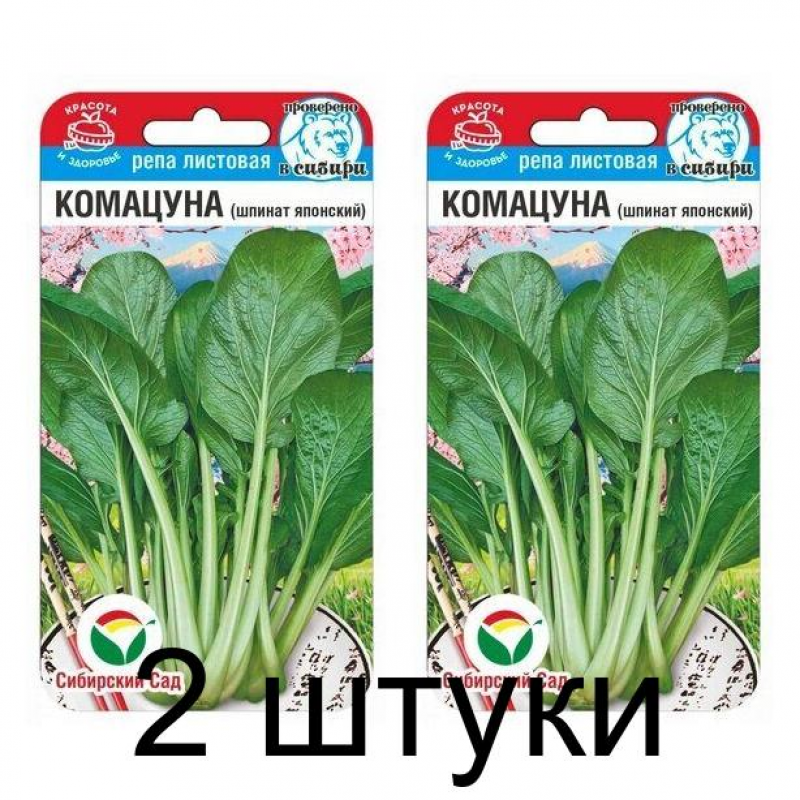 Раннеспелый сорт (от всходов до убоки на зелень 20-30 дней) листовой репы чаще называемый Японским шпинатом. Традиционно используется в национальных кухнях азиатских стран. Благодаря широкому набору полезных качеств, приятному вкусу и аромату стала популярной у огородников России. Зимой может выращиваться на домашних подоконниках в качестве микрозелени. В 100 граммах комацуны содержится около 23 ккал. Химический состав характеризуется повышенным содержанием углеводов, клетчатки, белков, витаминов. Розетка листьев прямостоячая, устойчива к преждевременному стеблеванию, состоит из 4-7 листьев, высотой 18 см. Лист темно-зеленый, без опушения, со слабоволнистым краем. Молодые ростки комацуны имеют пряный, слегка сладкий вкус, употребляются в свежем виде и обладают нежной, приятной текстурой.
