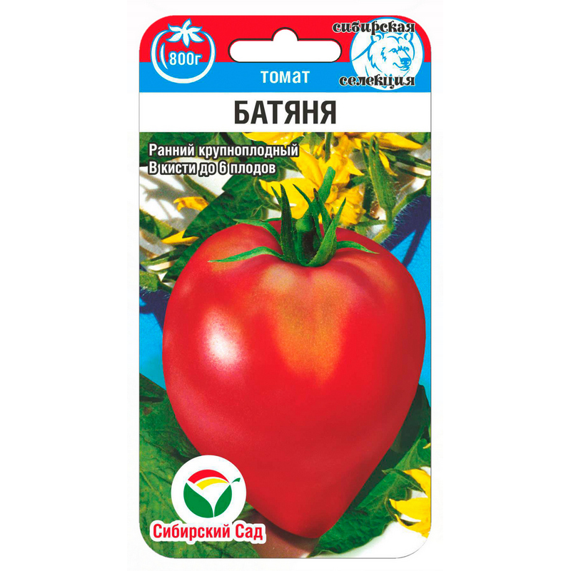 Очень удачный сорт сибирских селекционеров, сочетающий такие нужные качества, как скороспелость, крупноплодность, высокую урожайность и отличные вкусовые качества плодов. От всходов до начала созревания — 90 дней. Растение высотой 1,7-2,0 м, выращивается в стеклянных и пленочных теплицах либо в открытом грунте (в коловой культуре). Плоды сердцевидной формы с носиком, очень гладкие, блестящие, малинового цвета, массой 200-350 г, сахаристые, сладкие. Период плодоношения длительный, общая урожайность до 17 кг с 1 кв. м.