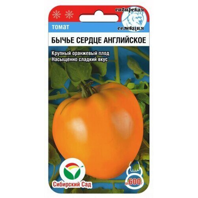 Оригинальный сибирский сорт с крупными оранжевыми плодами правильно-сердцевидной формы, заслуженно получивший очень высокую дегустационную оценку вкусовых качеств. Сорт среднеспелый, от посева до первого сбора урожая 105-110 дней. Рекомендуется для выращивания в защищенном и открытом грунте с подвязкой к опоре. Куст индетерминантный, умеренно раскидистый, обильно облиственный, высотой до 1,8 м. Плоды крупные, весом до 400-600 г. Форма округло-сердцевидная, со слегка заостренным кончиком. Цвет спелых томатов яркий, оранжево-желтый. Вкус очень приятный, насыщенно-сладкий, с легкими фруктовыми нотами и тонким ароматом. Повышенное содержание сахаров позволяет рекомендовать сорт для детского питания. Подходит людям, имеющим аллергию на традиционные красные плоды. Урожайность высокая, до 12 кг/м.
