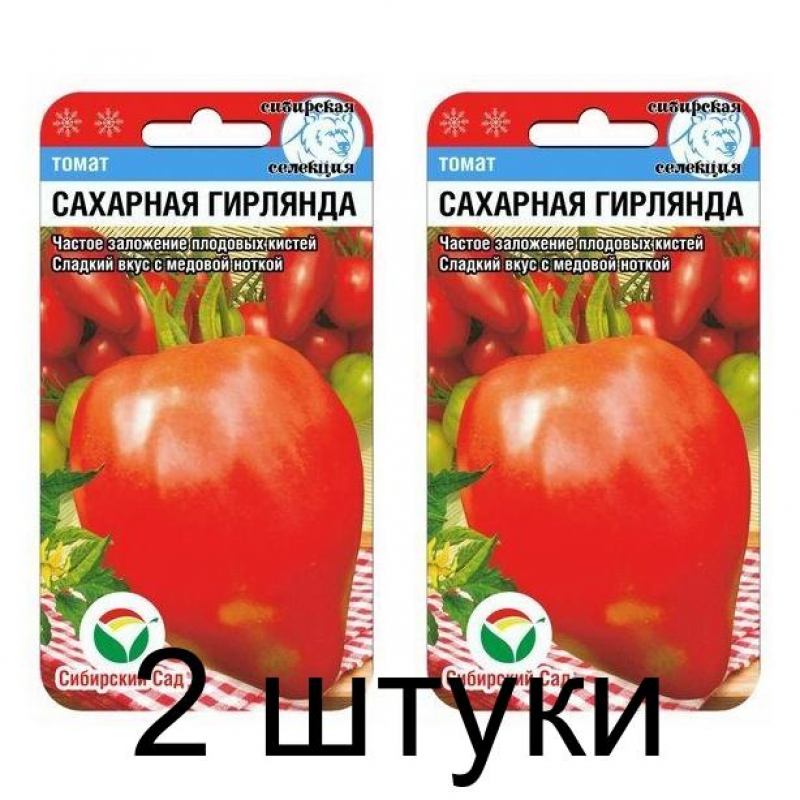 Среднеранний (100-105 дней) сорт для теплиц и открытого грунта. Ценится за высокую урожайность и великолепный сладкий вкус плодов. Благодаря частому заложению плодовых кистей растение напоминает яркую высокую гирлянду из малиновых сердечек. Отлично переносит перепады температур, обильно и длительно плодоносит до заморозков. Куст малооблиственный, индетерминантный, высотой до 1,8 м. Обильно формирует плодовые кисти с 5-6 сердцевидными томатами массой 150-300 г. Плоды красивой формы, изящные с острым носиком, малиновые с легкими золотистыми штрихами. Мякоть плотная, малосемянная, интенсивной розовой окраски, сочная, сахаристая, тающая во рту. Вкус замечательный, сладкий с медовой ноткой. С каждого растения можно получить 3-5 кг товарных плодов, созревающих гроздями. Плоды не растрескиваются, отлично смотрятся в засоле, товарны и транспортабельны.