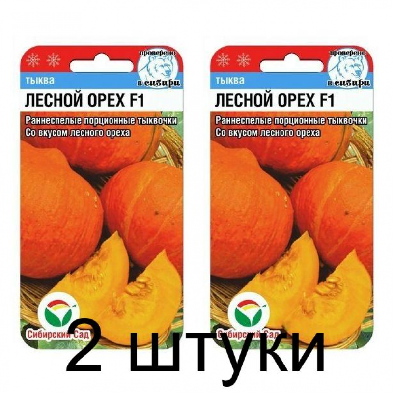 Чтобы отведать орехов, теперь не надо далеко ходить! Не в лесу, а на грядке вырастает лакомство с ореховым вкусом! Красивые оранжево-красные тыквы массой 1-1,5 кг с оранжевой, плотной, крахмалистой мякотью, вкусны в любом виде! Сорт раннеспелый, созревает за 95 дней. Хорошо хранится. Растение длинно-плетистое — до 5 метров.