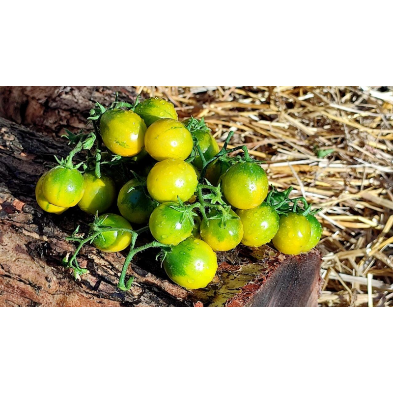 Среднеранний (105-110 дней) сорт с миниатюрными плодами из линейки «томатов-черри». Идеальный вариант для любителей необычного и оригинального. Отличается нестандартным зелено-золотистым цветом и приятнымй сладким вкусом плодов с оригинальным фруктовым послевкусием. Зеленные черри-томаты настоящая находка для людей с аллергией на красные фрукты и овощи, они разрешены кормящим матерям. Сорт высокодекоративен, выращивается в защищенном и открытом грунте. Растение высотой до 2м, часто завязывает кисти с большим количеством плодов, массой 10-20г каждый. Плоды округлые, изумрудно-золотистые в стадии полной спелости с большим содержанием полезного хлорофилла. Используются в качестве овощных десертов, салатах, консервациях и кулинарии. Урожайность сорта 2-3 кг с растения.