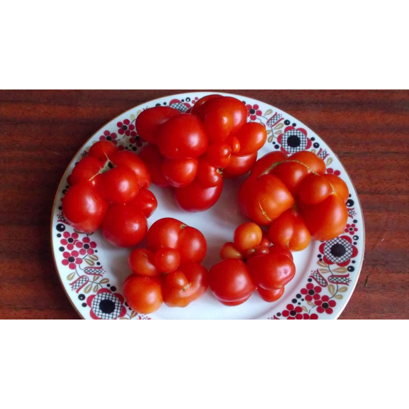 Среднеспелый (100-105 дней) редкий экзотический сорт с удивительными забавными плодами, состоящими из сросшихся долек, похожих на чесночные зубцы. Дольки легко отламываются не брызгая соком. Такие томаты удобно брать с собой в дорогу, поэтому сорт и называют Рейсетомейт (Томат Путешественника). Сорт модифицирован для выращивания в условиях Сибири в открытом и защищенном грунте. Растение мощное высотой 1,2-1,7 м в зависимости от условий выращивания. Формирует большое количество кистей с 3-5 уникальными плодами не похожими друг на друга, массой 100-200 г. Томаты красно-алые, состоят из 10-15 отдельных долек, собранных в один плод. Сорт универсального назначения, не склонен к растрескиванию, пригоден для свежих салатов, украшения любых блюд, кулинарии и зимних заготовок. Урожайность до 10кг/м2.