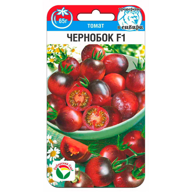 Раннеспелый (95-100 дней) высокорослый темноплодный гибрид десертного направления. Впечатляет своим ярким, необычным внешним видом и насыщенным вкусом. Мякоть плотная, мясистая и сочная, с выраженной сладостью и лёгкой фруктовой ноткой. На стадии созревания плоды имеют тёмно-красный оттенок с чёрно-фиолетовыми «плечиками», благодаря чему сорт и получил своё название — Чернобок. Темные томаты очень полезны, они содержат много аскорбиновой кислоты, богаты антоцианами. Гибрид отлично переносит транспортировку и долго сохраняет товарный вид. Рекомендуется для выращивания в защищенном грунте.