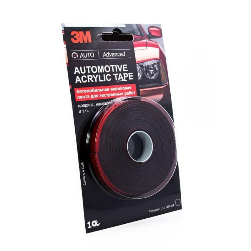 Надежно крепите элементы кузова, молдинги, декоративные накладки, номерные знаки и многое другое без сверления! Профессиональная двусторонняя лента Scotch VHB PT1100 от 3M (США) создана для сверхпрочной фиксации в автомобиле. Уникальная акриловая основа обеспечивает исключительную адгезию к самым разным поверхностям. Лента выдерживает суровые условия: перепады температур от -30°C до +90°C, влагу, мороз и вибрацию. Черный цвет делает крепление практически незаметным. Толщина 1.1 мм позволяет компенсировать неровности поверхностей. Идеальна как для внутреннего, так и для наружного применения на кузове. Доверьтесь качеству 3M для долговечного результата.