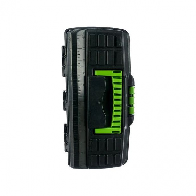 Ящик для инструмента Сибртех 90803 из пластика, 13 дюймов, 324 х 165 х 137 мм, — удобное вместилище для инструментов, бытовых мелочей, рыболовных снастей. На крышку нанесена измерительная шкала в сантиметрах и дюймах, поэтому можно проводить измерения, даже если под рукой нет линейки. Ящик пригодится в поездке, на рыбалке, а также дома, на даче или в гараже.