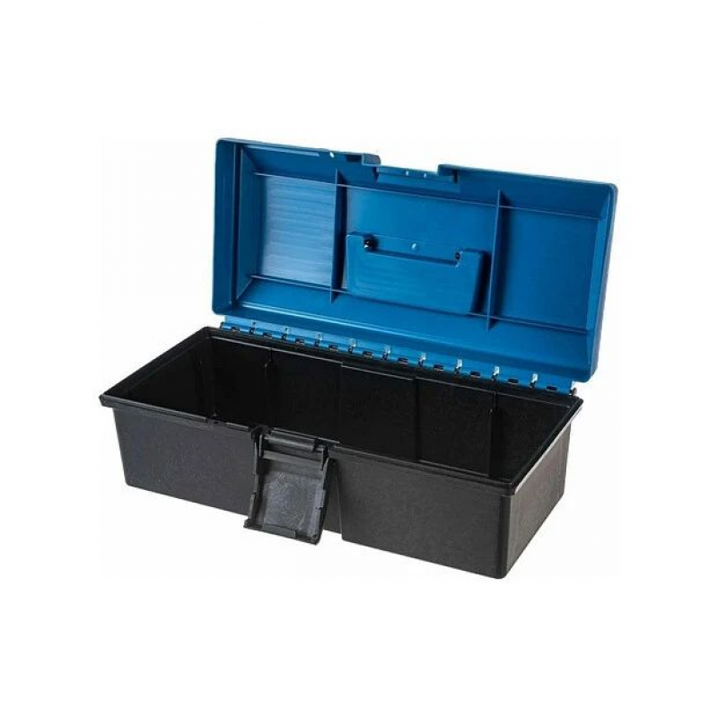 Ящик предназначен для хранения инструментов. Лоток в комплекте. Есть отверстия для навесного замка. Изготовлен из высококачественного прочного пластика, устойчив к механическим повреждениям, морозу и влаге. Для мелких деталей на корпусе крышки предусмотрены специальные отсеки. Выдвижная ручка облегчает переноску. Защелки эффективно фиксируют ящик и предотвращают выпадение предметов.