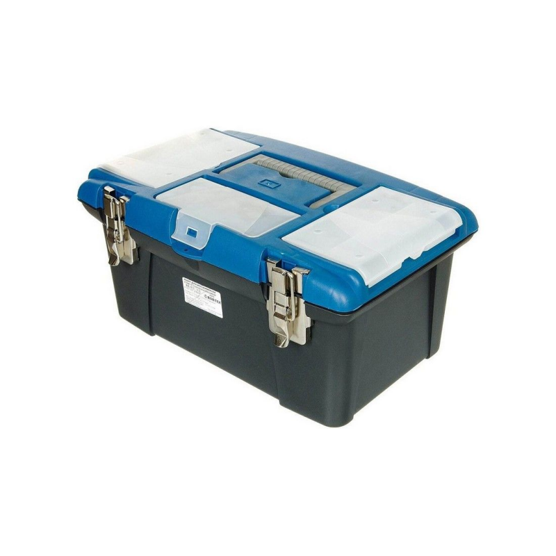 Ящик предназначен для хранения инструментов. Лоток в комплекте. Есть отверстия для навесного замка. Изготовлен из высококачественного прочного пластика, устойчив к механическим повреждениям, морозу и влаге. Для мелких деталей на корпусе крышки предусмотрены специальные отсеки. Выдвижная ручка облегчает переноску. Защелки эффективно фиксируют ящик и предотвращают выпадение предметов.
