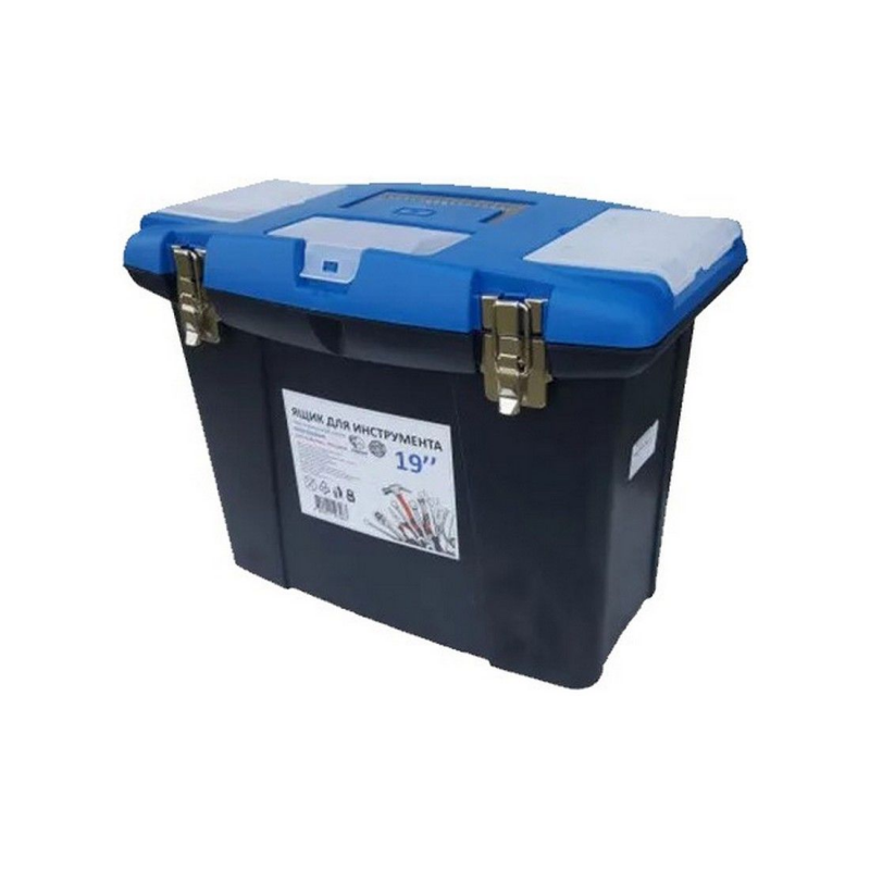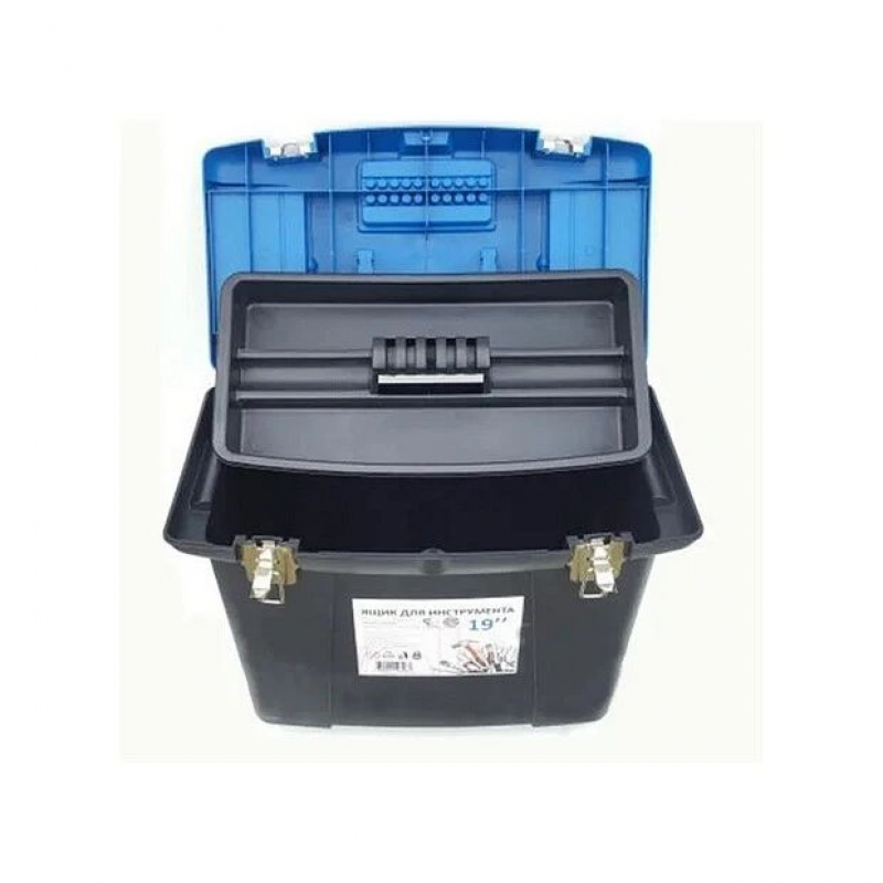 Ящик предназначен для хранения инструментов. Лоток в комплекте. Есть отверстия для навесного замка. Изготовлен из высококачественного прочного пластика, устойчив к механическим повреждениям, морозу и влаге. Для мелких деталей на корпусе крышки предусмотрены специальные отсеки. Выдвижная ручка облегчает переноску. Защелки эффективно фиксируют ящик и предотвращают выпадение предметов.