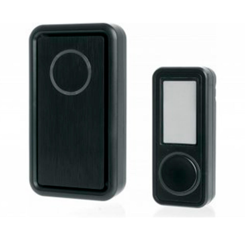 Беспроводной звонок Feron E-379 черного цвета. Питание основной базы от 2-х батареек AA, кнопки — от батарейки CR2032. Комплект: одна кнопка и один динамик. 18 мелодий, регулировка громкости, световая индикация. Радиус действия до 100 метров. Степень защиты кнопки IP44.