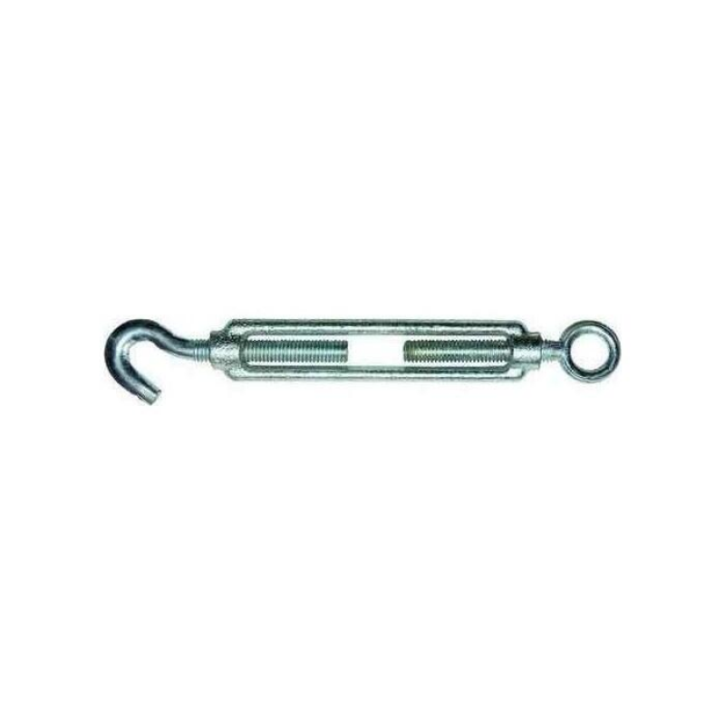 Используется для натяжения такелажа в грузоподъемных работах, строительстве, сельском хозяйстве и транспортировке. Крюк зацепляется за одно ушко, кольцо — за другое, затяжка производится вращением центральной муфты.