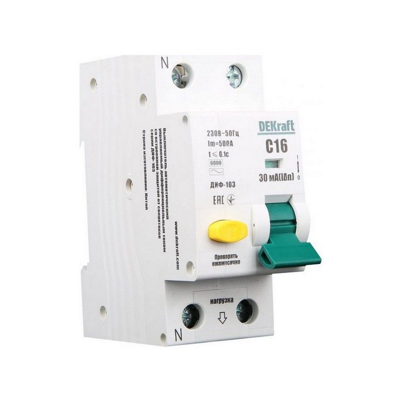 Дифавтомат DEKraft ДИФ-103 1П+Н 16А/10мА – высокочувствительное устройство для защиты от коротких замыканий и утечек тока, предназначенное для установки в электрические сети с повышенными требованиями к безопасности. Этот дифференциальный автоматический выключатель с одним полюсом и нейтралью (1P+N) рассчитан на номинальный ток 16 А и ток утечки 10 мА, что обеспечивает более высокий уровень защиты, предотвращая опасные утечки тока типа AC.