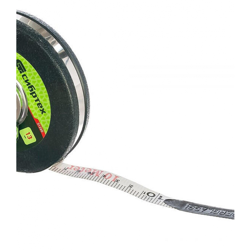 Геодезическая рулетка СИБРТЕХ длиной 10 метров предназначена для точных измерений при строительных и геодезических работах. Инструмент оснащен прочной фибергласовой лентой шириной 13 мм с двусторонней метрической шкалой и классом точности 2. Корпус из ударопрочного АБС-пластика обеспечивает надежную защиту, а боковой механизм скручивания с кнопкой обеспечивает удобство использования. Лента оборудована магнитным зацепом и стальным складным крюком для фиксации при измерениях. Функция автостопа предотвращает самопроизвольное скручивание, а ручной фиксатор полотна позволяет зафиксировать ленту в нужном положении. Вес инструмента составляет всего 167 грамм, что делает его мобильным и удобным для переноски.