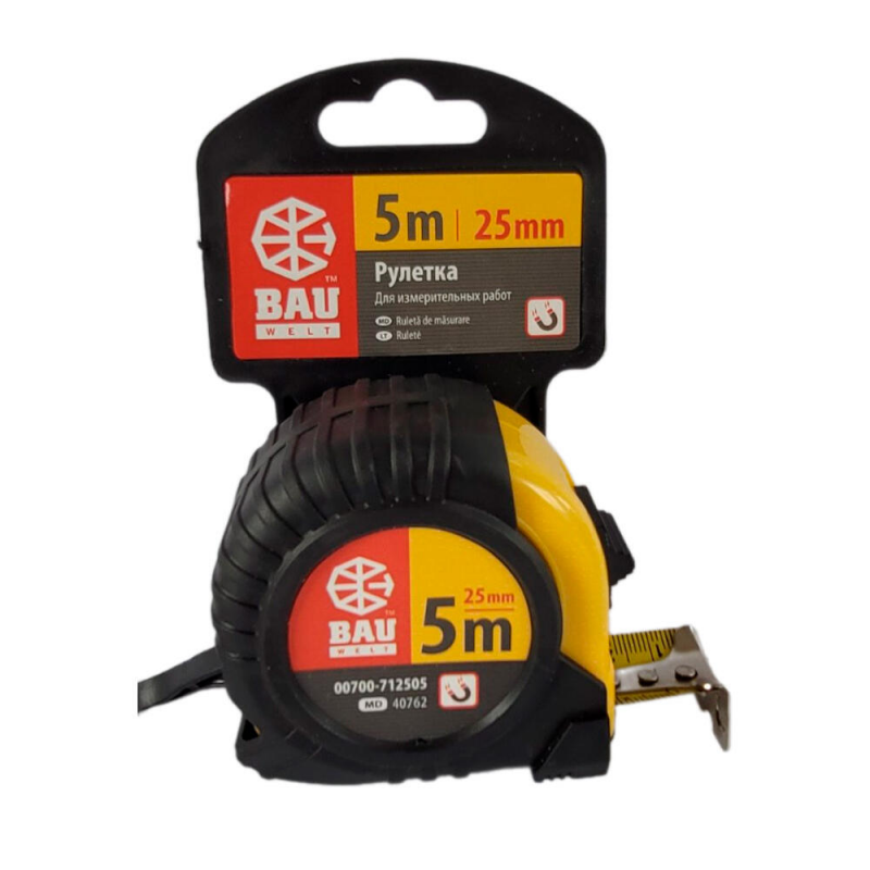 Рулетка BAUWELT 00700-712505 — профессиональный измерительный инструмент с магнитным зацепом для удобной работы с металлическими поверхностями. Модель оснащена прочным матовым пластиковым корпусом с резиновым противоскользящим покрытием, обеспечивающим надежный хват. Лента длиной 5 метров и шириной 25 мм изготовлена из стали с матовым антиабразивным покрытием и имеет двустороннюю метрическую шкалу. Функции автостопа и ручного фиксатора полотна позволяют точно фиксировать измерения. Компактный ударопрочный корпус и прочный нейлоновый ремешок делают инструмент мобильным и долговечным.