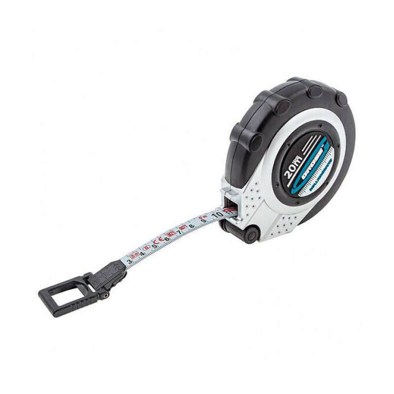 Геодезическая рулетка GROSS длиной 20 метров — профессиональный измерительный инструмент для точных работ. Лента изготовлена из прочной стали шириной 13 мм с двусторонней метрической шкалой, что обеспечивает удобство измерений с любой стороны. Корпус выполнен из ударопрочного пластика с резиновыми вставками для надежного хвата. Магнитный зацеп надежно фиксирует начало измерения на металлических поверхностях. Инструмент соответствует 2 классу точности, что гарантирует минимальную погрешность при проведении измерительных работ. Идеально подходит для строителей, отделочников и домашних мастеров.