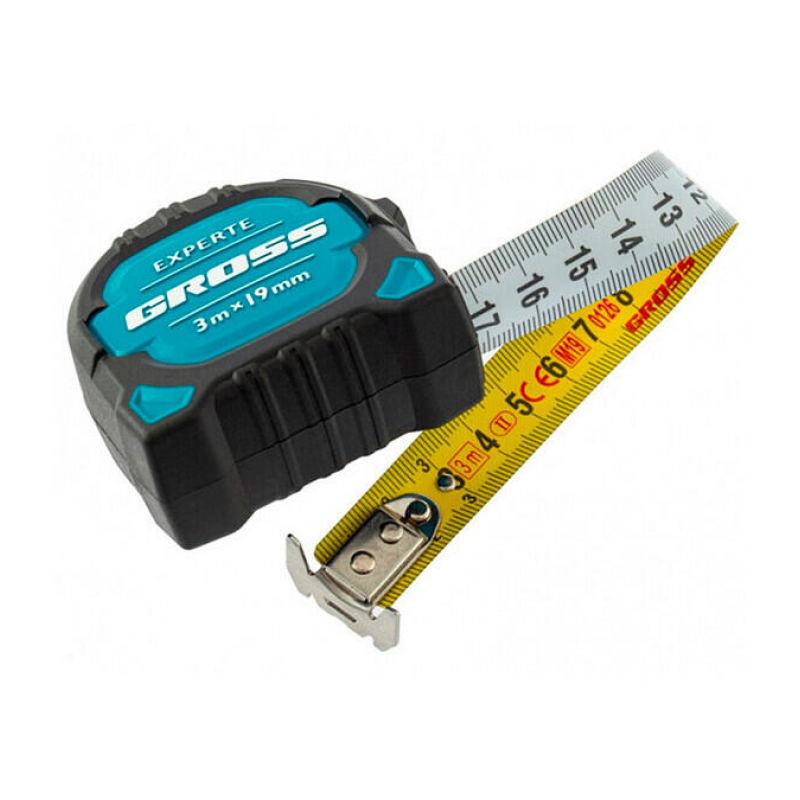 Рулетка GROSS Experte предназначена для точных линейных измерений при строительных, ремонтных и монтажных работах. Для получения точных результатов плотно фиксируйте начало ленты с помощью магнитного зацепа на металлических поверхностях или вручную на других материалах. Используйте ручной фиксатор для закрепления нужной длины ленты при переносе размеров. Благодаря двусторонней шкале измерения удобно проводить как слева направо, так и в обратном направлении. После использования аккуратно сворачивайте ленту, избегая резких движений, чтобы сохранить ее целостность и точность шкалы. Храните инструмент в сухом месте, защищенном от прямых солнечных лучей.