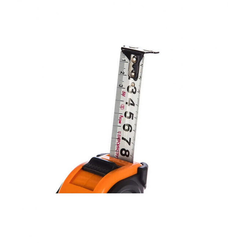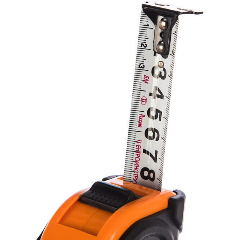 магнитный зацеп для удобства измерений; прочный обрезиненный корпус; фиксатор мерной ленты; мощный механизм возврата; четкая двусторонняя шкала; эргономичный ремешок; долгий срок службы