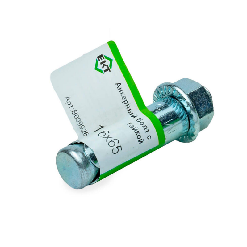 Анкерный болт с гайкой 16х65 мм от бренда ЕКТ. Изготовлен из оцинкованной стали для надежного крепления к бетону, кирпичу и природному камню. Поставляется поштучно в этикетке.