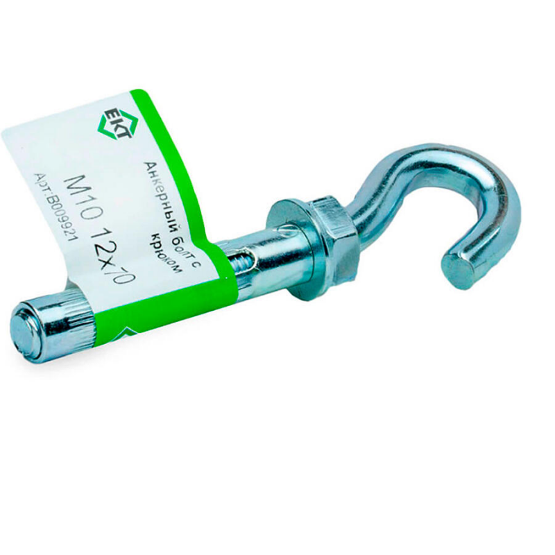 Анкерный болт с крюком M10 12х70 от бренда ЕКТ. Изготовлен из оцинкованной стали для надежности. Предназначен для крепления в бетоне, кирпиче и природном камне. Диаметр резьбы: 10 мм. Длина: 70 мм. Продается по 1 штуке в упаковке с этикеткой.
