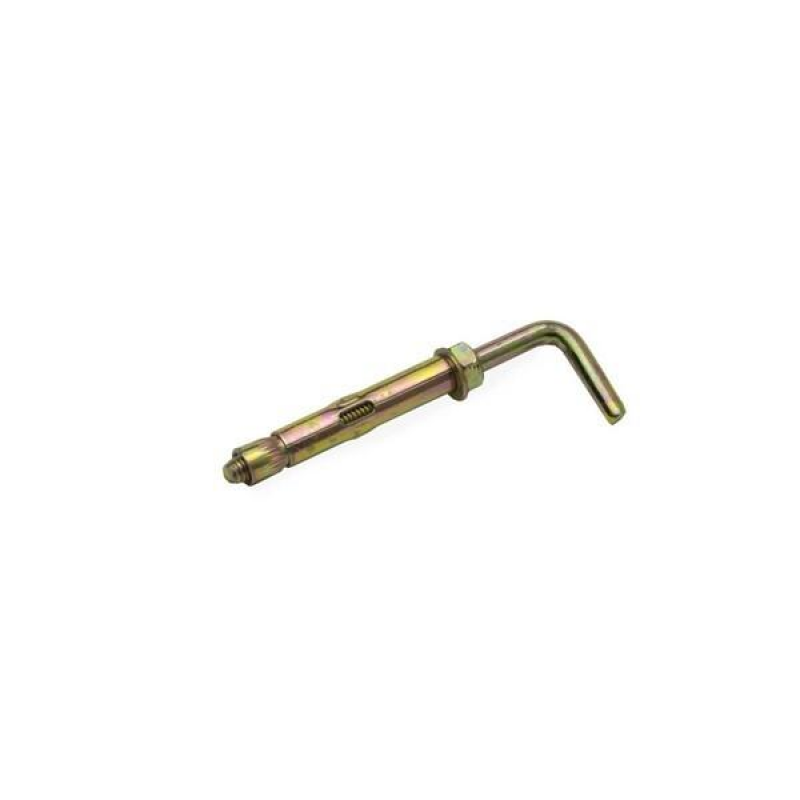 Г-образный анкерный болт М6 8х60 для надежного крепления тяжеловесных конструкций к бетону, кирпичу и природному камню. Изготовлен из оцинкованной стали с антикоррозийной защитой. Конструкция включает резьбовой болт с кольцевой головкой, конусообразную гайку и распорную муфту с продольными прорезями для максимального сцепления.