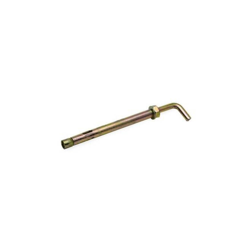 Г-образный анкерный болт М8 10х120 для надежного крепления тяжеловесных конструкций к бетону, кирпичу и природному камню. Изготовлен из оцинкованной стали с пассивацией для защиты от коррозии. Конструкция включает резьбовый болт с кольцевой головкой, конусообразную гайку и распорную муфту с продольными прорезями для максимальной фиксации.