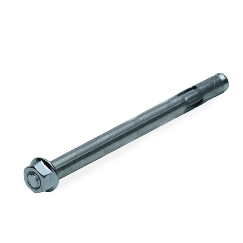 Анкерный болт с гайкой 10х125 мм предназначен для сквозного монтажа тяжелых конструкций к полнотелым материалам: бетону, кирпичу или природному камню. Конструкция включает стальной оцинкованный стержень с резьбой, конусообразный хвостовик, подвижную распорную муфту, шайбу и гайку. При затягивании гайки муфта равномерно распирается по всей длине, создавая максимально надежное сцепление с основанием.