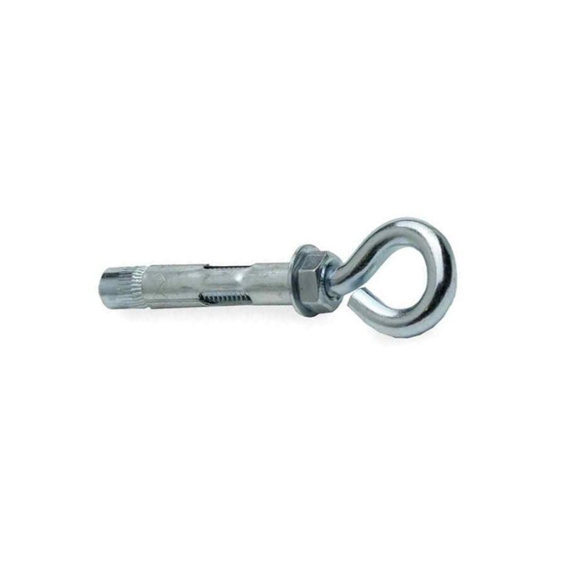Анкерный болт с кольцом M8 10х60 из оцинкованной стали для надежного крепления к плотным материалам: бетону, кирпичу и природному камню. Предназначен для стационарного монтажа тяжелых конструкций, подвешивания тросов, цепей и такелажного оборудования. В комплекте: болт с резьбой, конусообразная гайка, распорная муфта с прорезями и прочное монтажное кольцо.