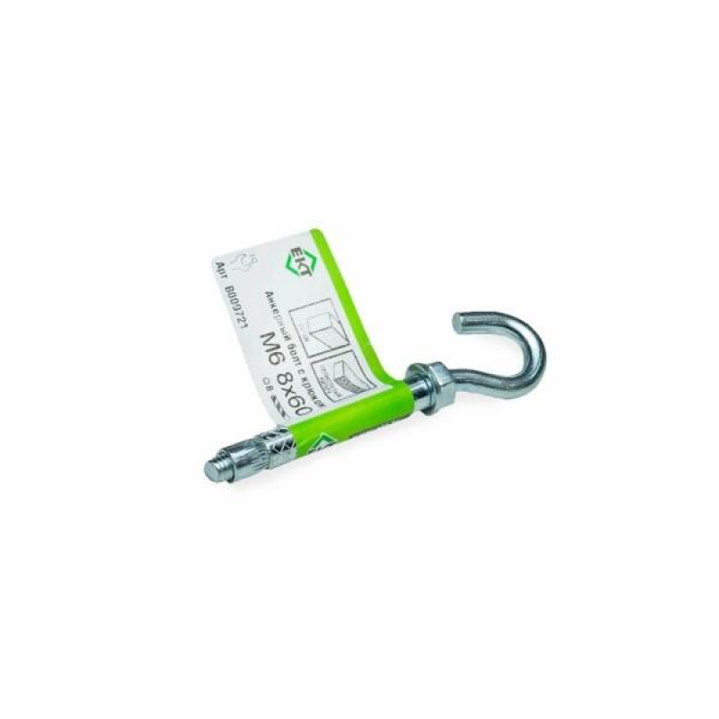 Анкерный болт с крюком M6 8x60 для надежного крепления в полнотелые материалы: бетон, кирпич, природный камень. Изготовлен из оцинкованной стали. Поставка: 1 шт. в упаковке с этикеткой.