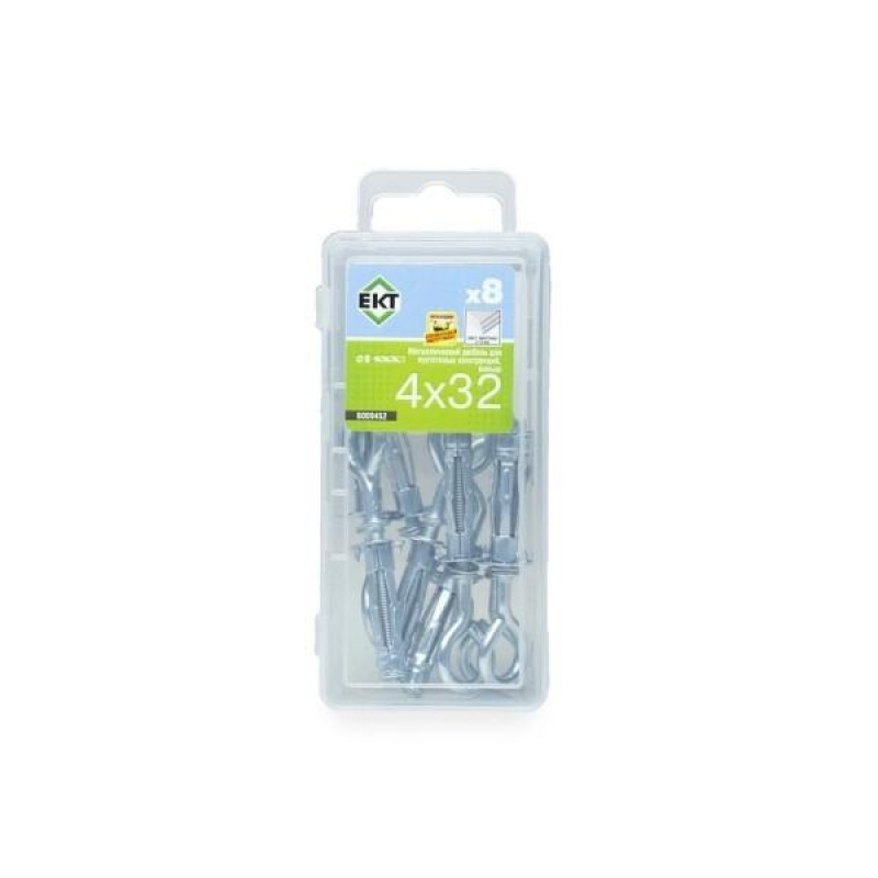 Металлический дюбель для надежного крепления в пустотелых материалах. Предназначен для монтажа полок, шкафов, карнизов, светильников и других элементов в гипсокартон, ДСП, щелевой кирпич и газобетон. Изготовлен из оцинкованной стали. Диаметр: 4 мм, длина: 32 мм. Упаковка: 8 шт.