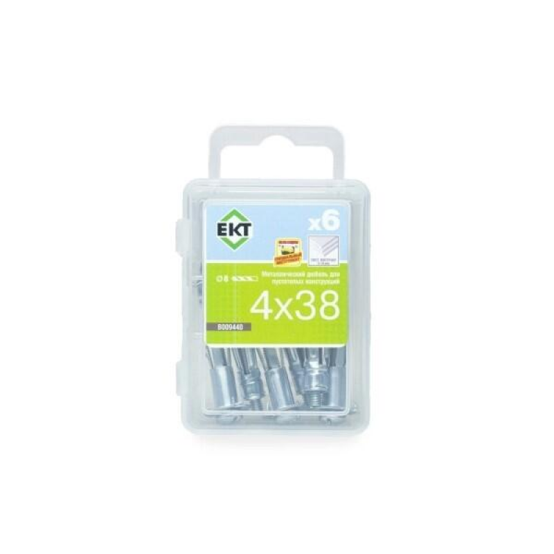 Металлический дюбель для надежного крепления в пустотелых материалах и листовых конструкциях. Предназначен для монтажа полок, шкафов, карнизов, светильников и других элементов в гипсокартон, ДСП, потолочные перекрытия и газобетонные блоки. Изготовлен из оцинкованной стали. Диаметр: 4 мм, длина: 38 мм. Упаковка: 6 шт.