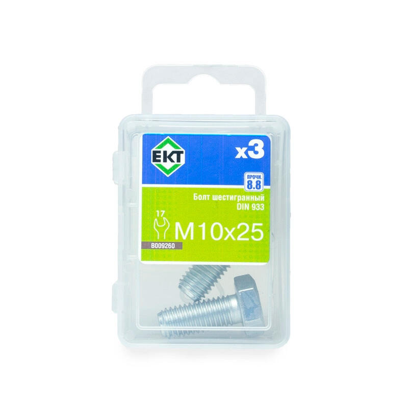Болт шестигранный оцинкованный, класс прочности 8.8, DIN 933. Диаметр резьбы: 10 мм, длина: 25 мм. Изготовлен из конструкционной стали. В упаковке 3 шт.