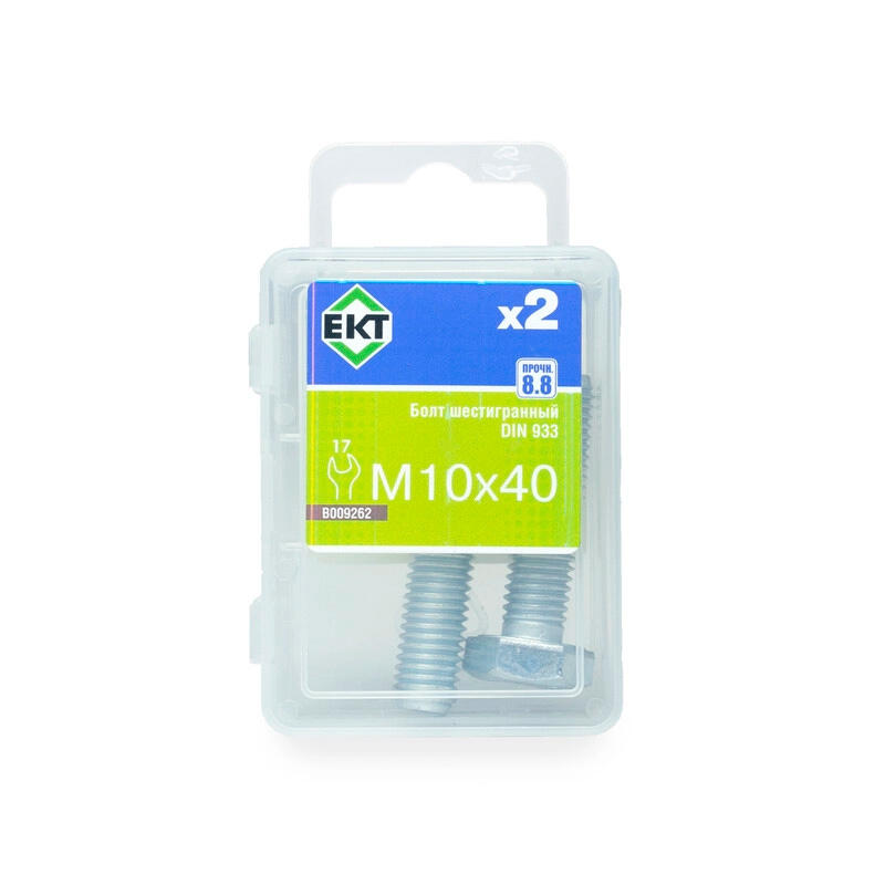 Болт шестигранный DIN 933, М10х40 мм, оцинкованный, класс прочности 8.8. Упаковка: 2 шт.